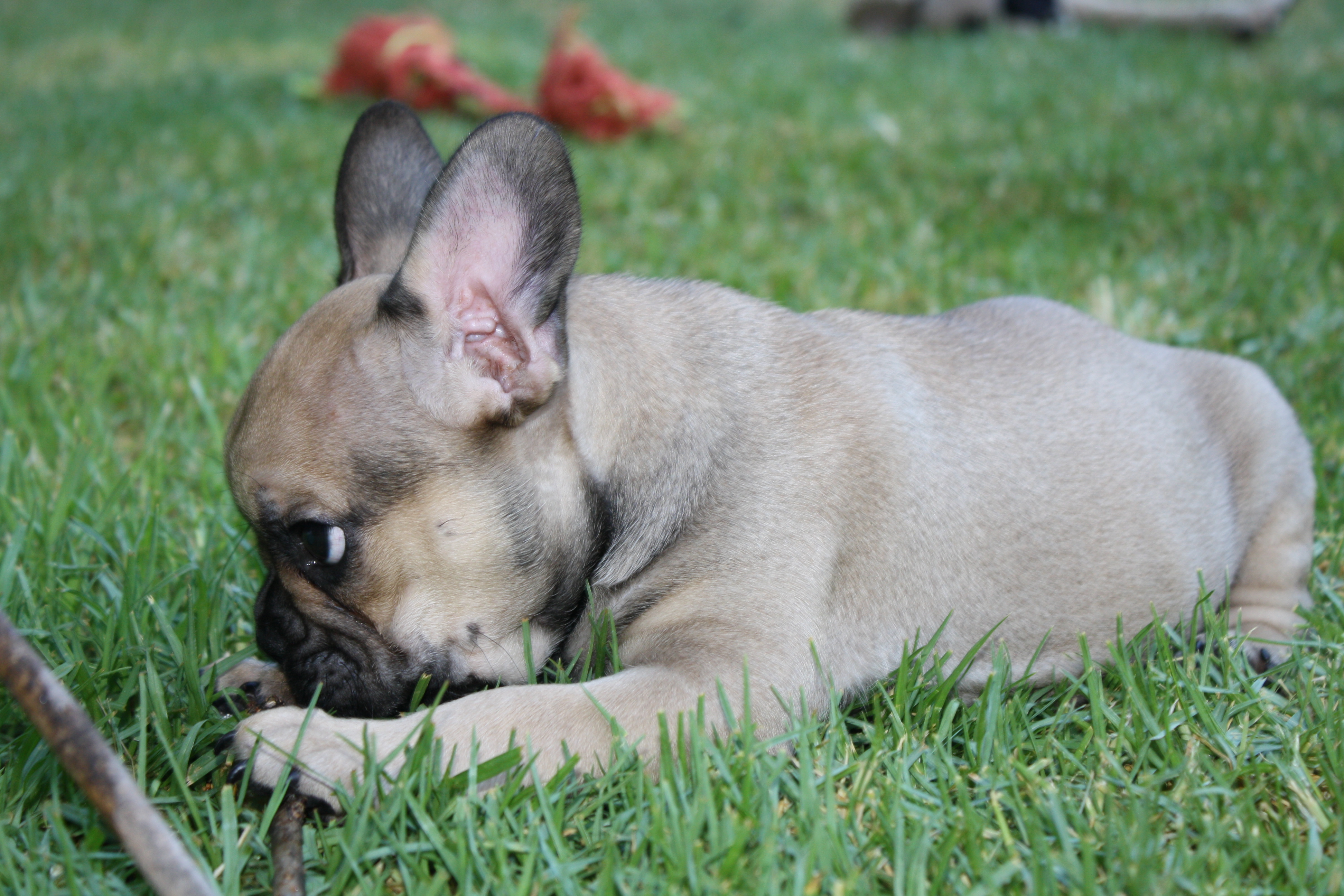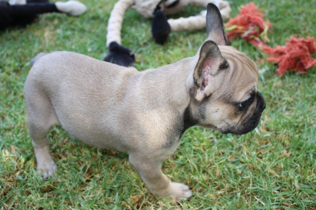 He has a stunning sable coat and you have to see him in person to really appreciate the unique pattern of his fur. He will have an athletic build with a big square head just like his mom (Piggy) and dad (Winston) and will look very similar to his dad. We expect Henry to be between 25-30 pounds fully grown.